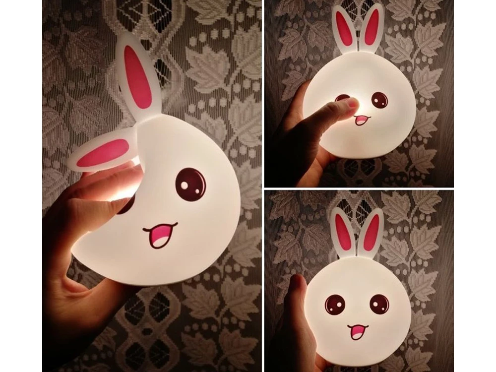 Roztomilá lampička, která udělá radost snad každému dítěti. Lampa je vyrobena z měkkého, na dotek příjemného silikonu. Králík je odolný proti pádům a rozdrcení, díky čemuž bude dlouho sloužit jako svítilna a měkký plyšák, kterého lze vzít do postýlky i během spánku. Určitě se bude hodit dětem, které se bojí nebo nerady usínají ve tmě.