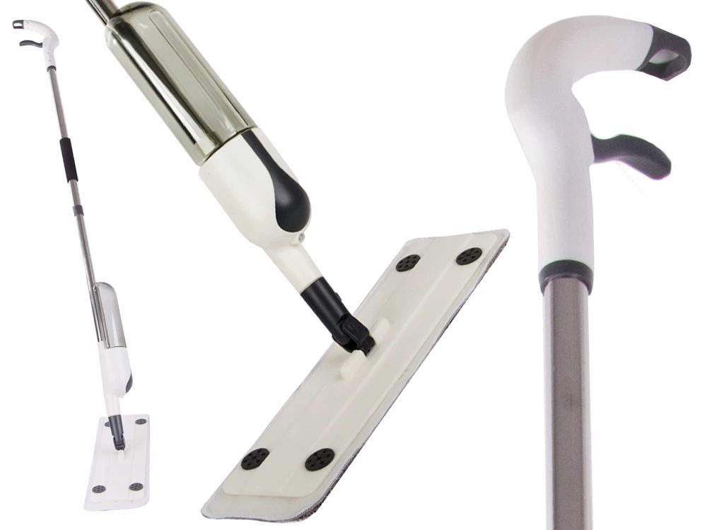 Díky spouštěcí páce namontované na rukojeti můžeme libovolně dávkovat příslušné množství čisticího prostředku. Protiskluzový potah umožňuje efektivní používání mopu. Rukojeť mopu lze odšroubovat, takže jej můžete uložit například do skříně.