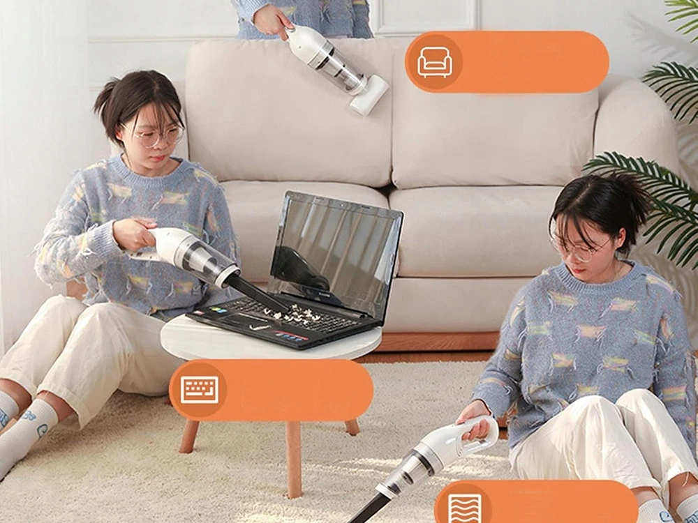 Ruční akumulátorový vysavač je perfektní volbou pro ty, kteří si cení pohodlí, mobility a efektivity úklidu. Díky vestavěné baterii můžete vysavač používat kdekoli – bezdrátově a bez omezení. Jeho kompaktní velikost je ideální pro použití doma, v autě nebo dokonce v kanceláři. Lehká konstrukce usnadňuje manévrování a dosah na těžko dostupná místa.