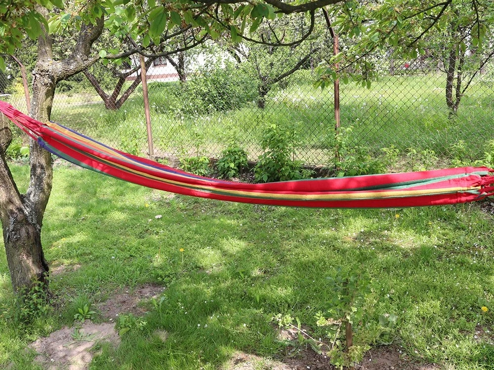 Stačí oba konce přivázat ke stabilnímu předmětu - hákům, sloupkům nebo stromům. Vhodný k pověšení na terase. Dokonce i když nemáte dům se zahradou, i tak si můžete užívat odpočinku ve visutém lůžku - stačí je zavěsit na balkóně nebo i v pokoji.