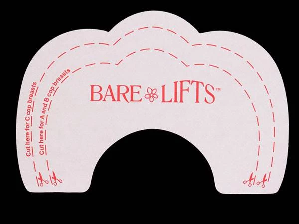 Bare Lifts je v podstatě neviditelná podprsenka, jednoduše aplikovatelná. Speciální folie, která se přilepí nad dvorec a následně se přichytí o něco výš, aby udržela prsa v potřebné výšce.