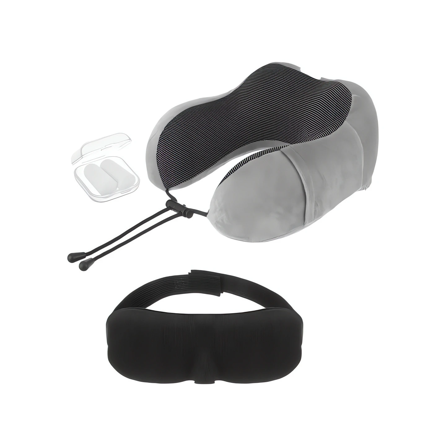 Dopřejte si kvalitní odpočinek na cestách i doma. Tento praktický cestovní set kombinuje ergonomický polštář na krk z paměťové pěny, pohodlnou masku na oči a špunty do uší v ochranném pouzdře. Polštář pomáhá stabilizovat hlavu a krční páteř, čímž zvyšuje komfort při cestování letadlem, autem, vlakem i při odpočinku v kanceláři. Maska na oči omezuje rušivé světlo a špunty pomáhají ztlumit okolní hluk – ideální kombinace pro klidný spánek kdekoliv.